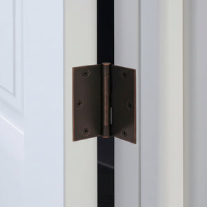 The Oil Rubbed Bronze 3-1/2" Door Hinge with Square Corners is designed for standard residential interior doors. The rich oil rubbed bronze finish complements traditional, rustic, and transitional door hardware styles.