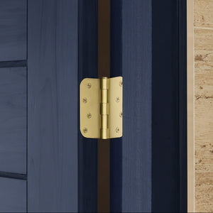 The Satin Brass 4" Door Hinge with 5/8" Radius Corners is commonly used on exterior doors, which are doors that lead from the interior of a home to the outside or into an attached garage.