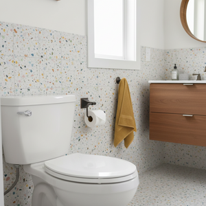 The 500 Series Euro Style Toilet / Tissue Paper Holder in Oil Rubbed Bronze offers a clean, modern look with an open-ended arm that makes changing rolls quick and easy. The design features a bold square backplate paired with a streamlined, right-angle arm for a crisp, contemporary feel.