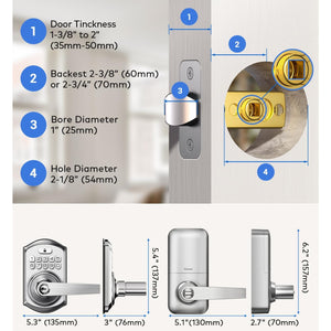 • Security: Provides reliable home protection with its sturdy aluminum alloy construction, weather resistance (IP54), durability, anti-peeping user code protection, low battery indicator, and solid lock cylinder.