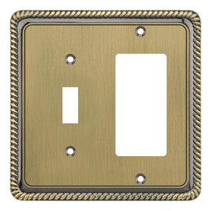 Upgrade your space with a solid-metal wall plate that blends classic rope-edge detail with durable performance. This Harmon Antique Brass cover fits one standard toggle switch and one standard Decora/rocker opening (GFCI outlet, rocker switch, dimmer, or smart switch). A premium choice over plastic, it adds warmth and character while standing up to daily use.