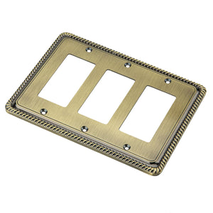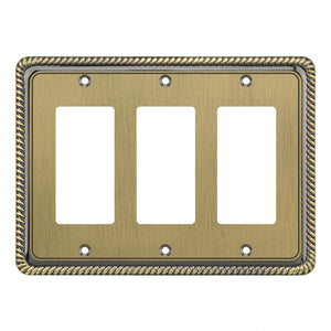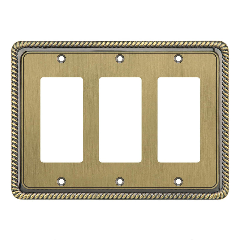 Harmon Rope Edge Switch Plate — Antique Brass (Triple Decora)