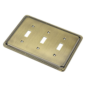 Harmon Rope Edge Switch Plate — Antique Brass (Triple Toggle)