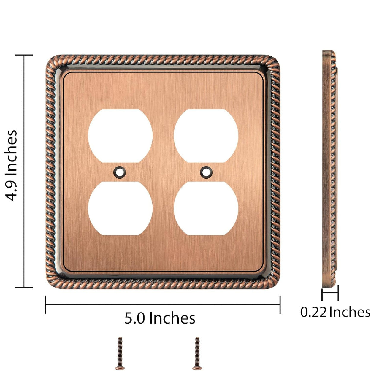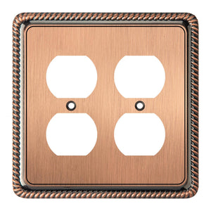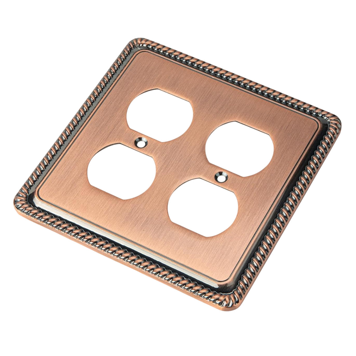 Add warmth and timeless character to your walls with the Harmon Antique Copper Double Duplex Rope Edge Outlet Cover. Expertly crafted from solid zinc alloy, this durable metal wall plate replaces standard plastic covers for a lasting, elegant upgrade. The decorative rope-edge border complements both traditional and transitional décor styles while the antique copper finish adds rich depth and sophistication.