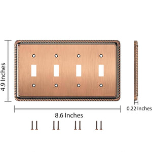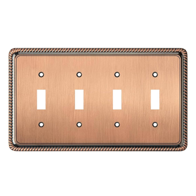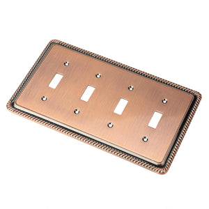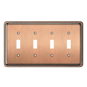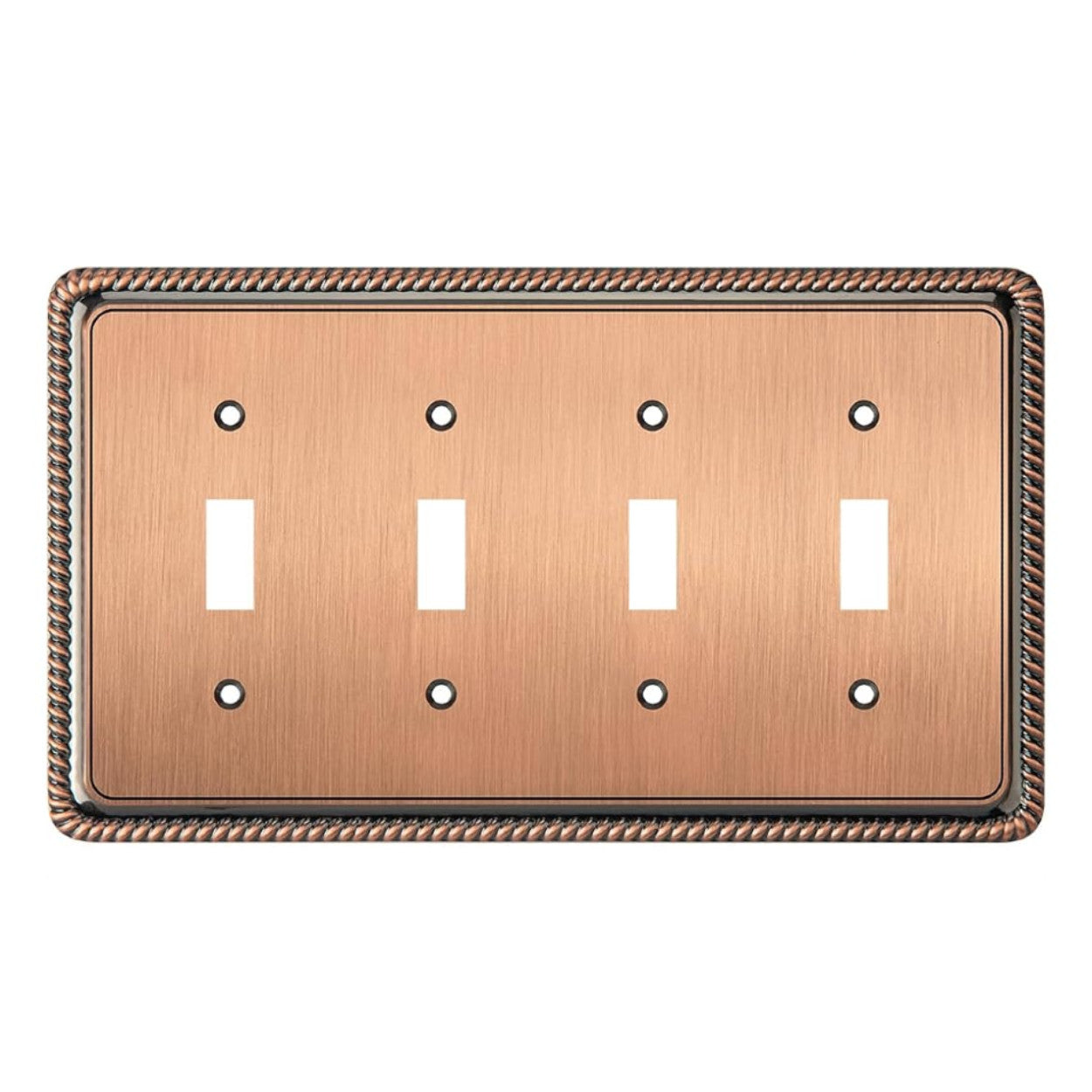 Bring warmth, durability, and timeless beauty to your walls with the Harmon Antique Copper Quad Toggle Rope Edge Switchplate Cover. Made from solid zinc alloy, this decorative wall plate combines exceptional strength with refined craftsmanship. The elegant rope-edge border and antique copper finish create a sophisticated accent that complements a wide variety of décor styles—from traditional to transitional.