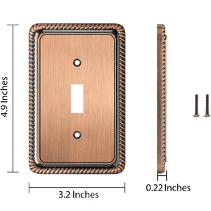 Add a touch of timeless elegance to any room with the Harmon Antique Copper Single Toggle Rope Edge Switchplate Cover. Expertly crafted from solid zinc alloy, this decorative wall plate combines strength, style, and classic design. Its intricate rope-edge detailing and warm antique copper finish bring sophistication to your walls while offering long-lasting protection for your switches.