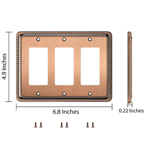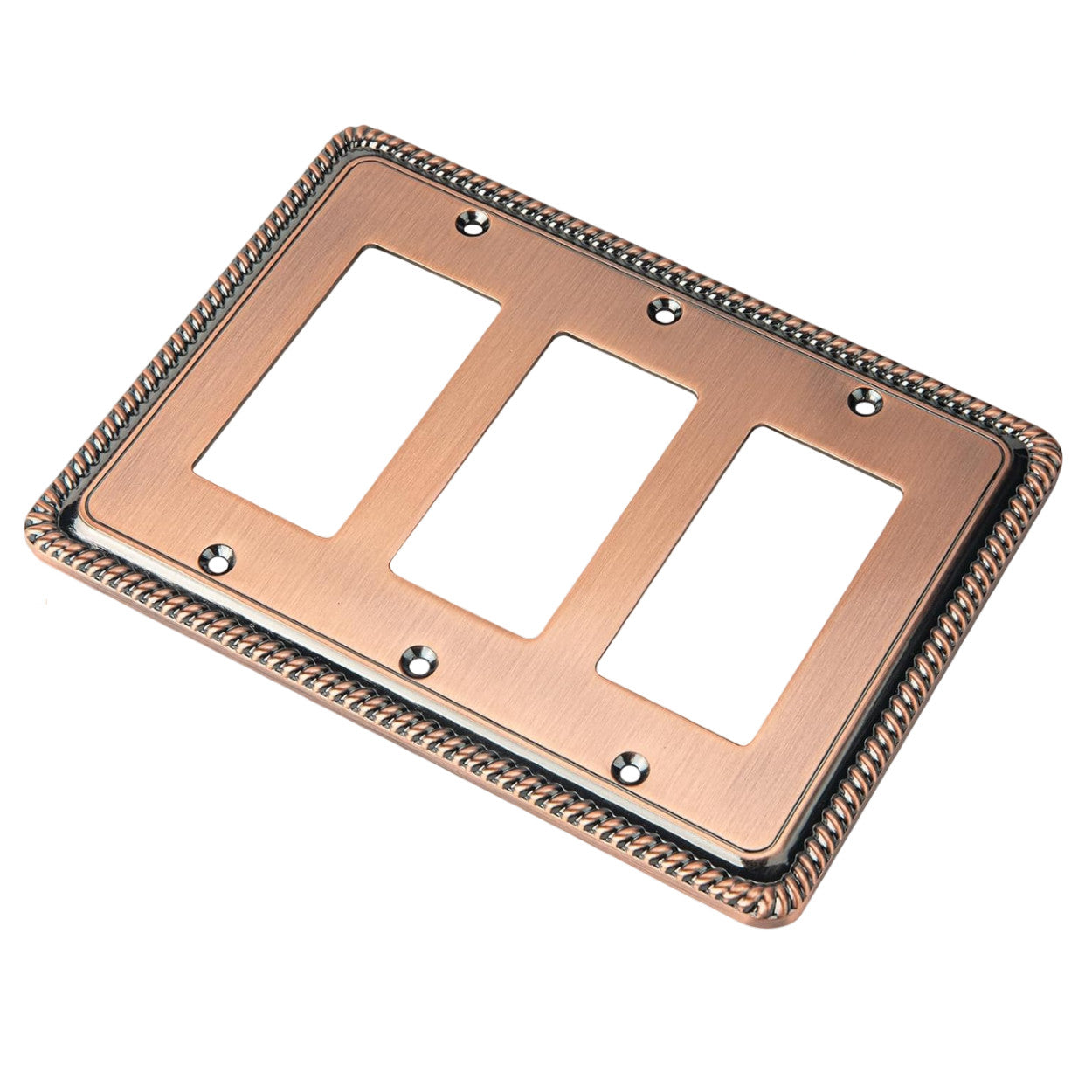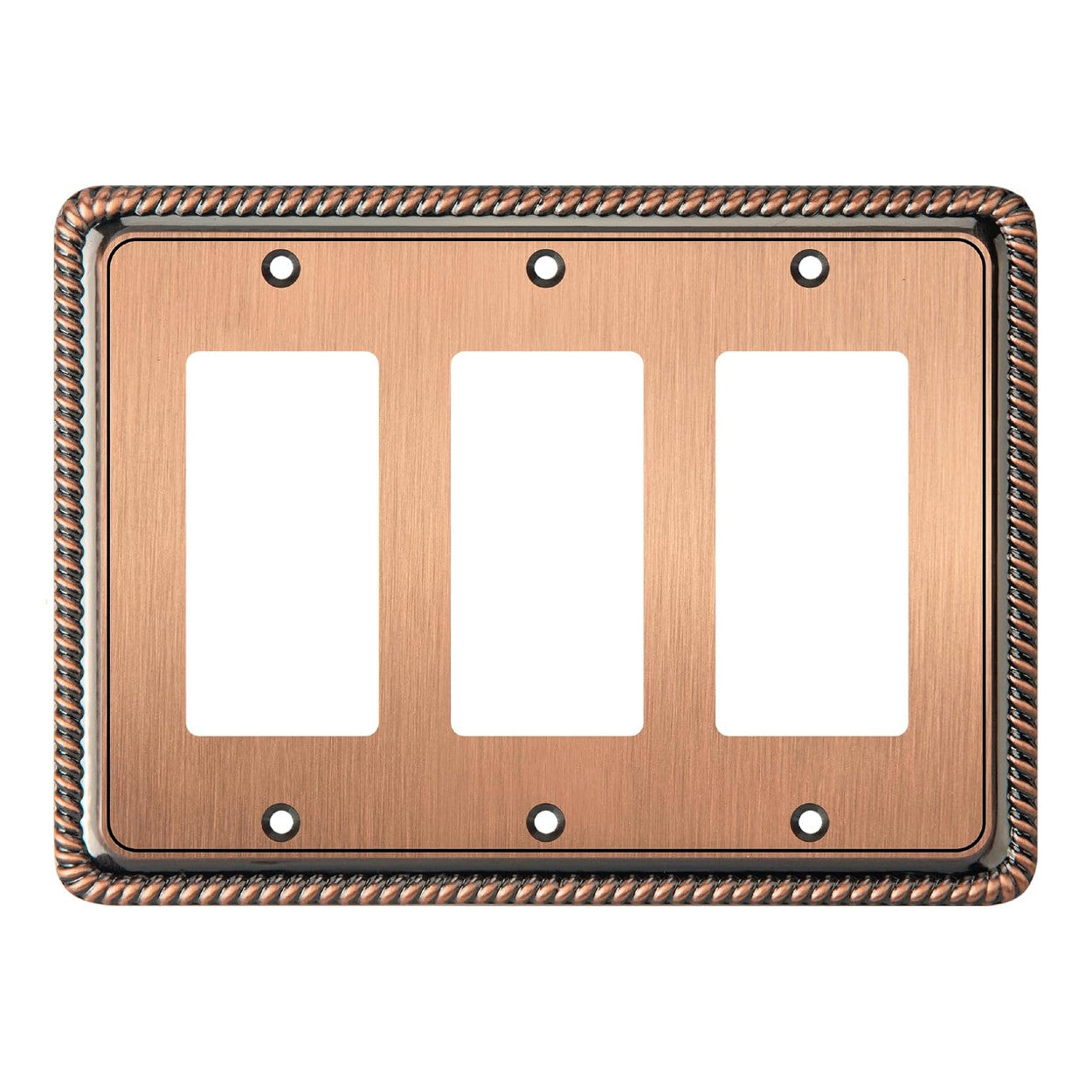 Add warmth and sophistication to your walls with the Harmon Antique Copper Triple Decora Rope Edge Switchplate Cover. Constructed from solid zinc alloy, this premium metal wall plate provides exceptional durability with a touch of timeless charm. The intricate rope-edge detailing enhances both classic and contemporary décor, while the rich antique copper finish adds depth and elegance to any room.