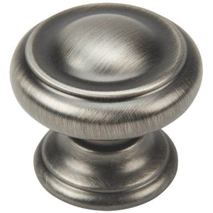 The Cosmas 3317AS Antique Silver Cabinet Knob features a classic stepped-edge profile with a smooth, rounded top that provides a comfortable grip and timeless appearance. The Antique Silver finish delivers a soft, brushed metallic look that pairs beautifully with both traditional and transitional cabinetry.