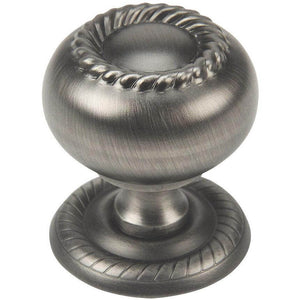 The Cosmas 4040AS Antique Silver Hollow Cabinet Knob features an elegant rope-style accent around the top and a decorative matching backplate for a more traditional, furniture-inspired look. The Antique Silver finish highlights the sculpted details while providing a soft metallic tone that works well with both light and dark cabinetry.