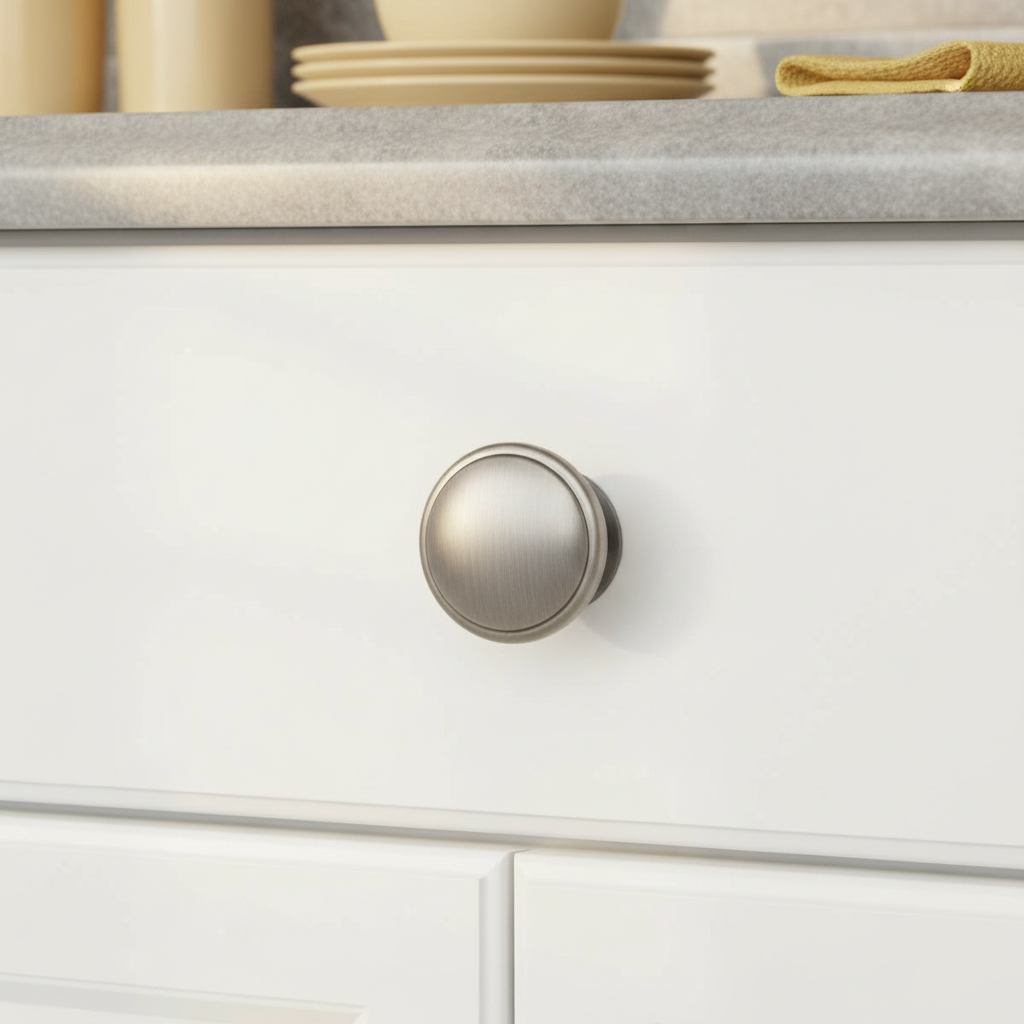 This knob is ideal for kitchens, bathrooms, and furniture pieces where a classic shape and comfortable grip are desired.
