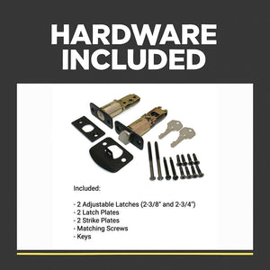 | Hardware Included | Strike Plates, Latch Plates and Matching Screws |