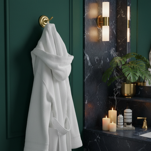 Understated elegance and a beautiful brushed brass finish make the Designers Impressions Royal Series bathroom accessory set the perfect way to tie your bathroom design together. The set features a solid and sturdy metal bath towel bar designed to hold the heaviest of linens as well as a robe hook, a towel ring, and a toilet paper holder to complete the set and bring a contemporary look to the room.