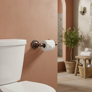 The Naples Series Toilet / Tissue Paper Holder in Oil Rubbed Bronze blends classic elegance with refined decorative detail. A traditional round backplate with an ornate rope-edge border pairs with smooth finial accents to create a timeless focal point in your bathroom.