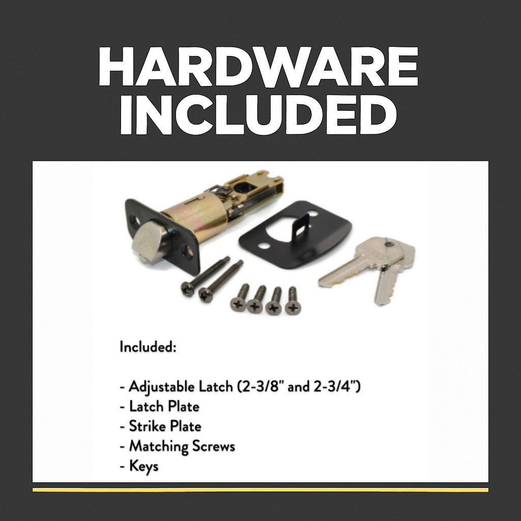 | Hardware Included | Strike Plate, Latch Plate and Matching Screws |