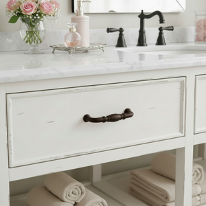 The Amerock BP53013-FB barrel pull is a classically designed cabinet pull that blends the traditional with the modern. The stunning black finish of this elegantly designed 3" pull means that it blends into any home decor from farmhouse rustic to modern chic. Amerock is an award-winning cabinet hardware company providing inspiring designs since 1929.