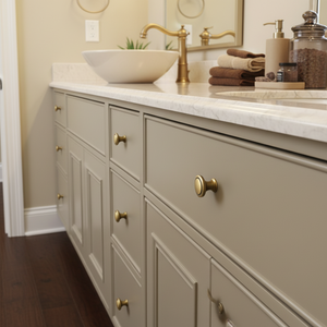 Cosmas offers the stunningly simplistic 5560BAB brushed antique brass knob. This round cabinet knob is one of the most popular knobs because of its timeless design, versatility and beauty. The knob, offered in a variety of finishes, features a slight raised center and subtle rounded details. The base of the knob is 3/4" and the projection is 1" for easy grasping. Offered here in the brushed antique brass, the 5560 perfectly coordinates with any of Cosmas pulls in the same finish. In an effort to stay true to an authentic antique finish, there will be variations in the finish from one item to another. This is by design in order to emulate an authentic "aged" appearance.