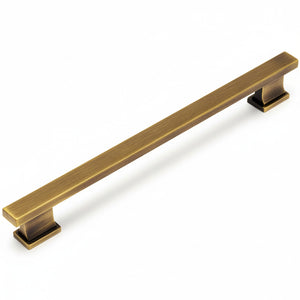Finished in Brushed Antique Brass, this pull blends modern form with warm, old-world character for a look that feels elevated and inviting. With 7-1/2" hole spacing, a 9" overall length, and 1-1/8" projection, it is designed for comfortable daily use. Slight finish variations are intentional and help create an authentic antique appearance.