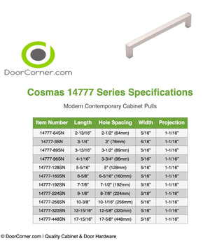 Cosmas 14777-160SN Satin Nickel Modern Contemporary Cabinet Pull