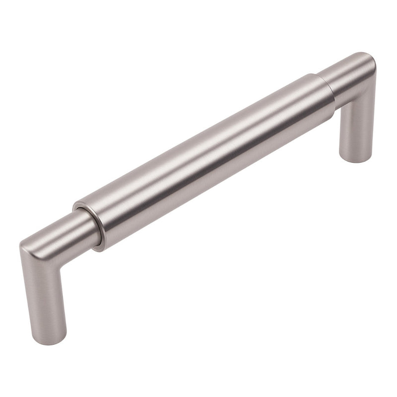 The Cosmas 1500 series cabinet pulls are a modern contemporary pull, featuring a variety of finishes and hole spacing sizes. The Cosmas 1500-128SN features a 5” center to center hole spacing and a satin nickel finish. The pull boasts a substantial band at its center which allows for easy grip and durability. The pull is a perfect choice for high traffic areas like kitchens and bathrooms, as the robustness of this particular hardware series will lend itself to longevity.