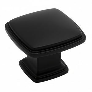 The Cosmas 4391FB Flat Black Cabinet Knob features a clean square design with softly rounded edges and a slightly beveled top surface. Its bold geometric shape makes it an excellent choice for modern kitchens, contemporary bathrooms, and updated furniture pieces.