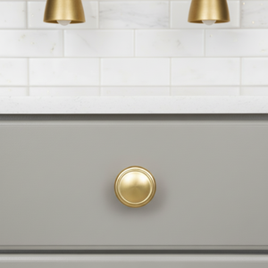 The Cosmas 5982BB is a classic cabinet knob in the brushed antique brass finish. The straightforward and ageless design of this round knob makes it a perfect to feature on kitchen cabinets, bathroom vanities or furniture. The knob boasts a subtle ringed edge on the face, a round base and a 1" diameter for easy grasping. The quintessential design of this knob is meant to match any of the pulls in the same finish