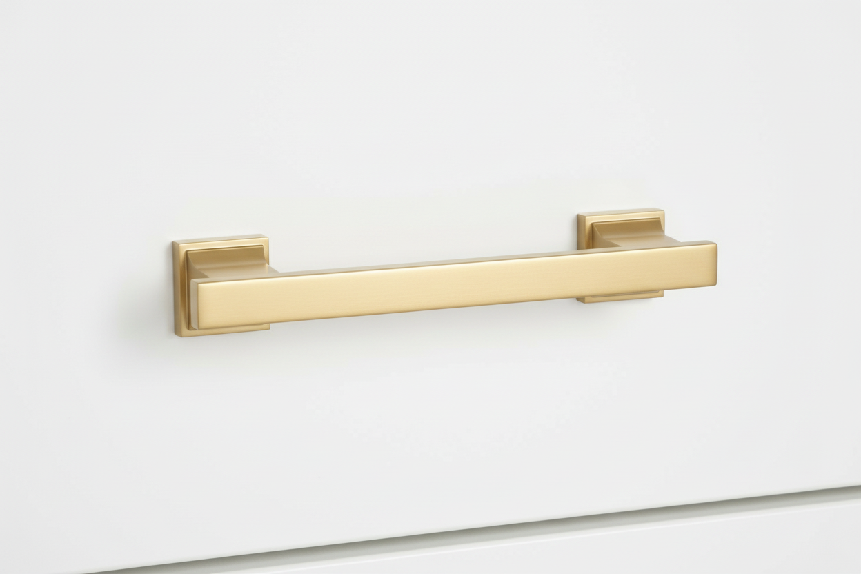 The Cosmas 702-3.5BG Brushed Gold Contemporary Cabinet Pull has a modern, square-edge design and coordinates perfectly with all 702 Series Brushed Gold Cabinet Pulls. This sturdy drawer pull is smooth and flat on the underside and is manufactured from 100% solid die-cast zinc metal with a premium brushed gold finish.