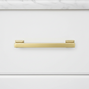 The Cosmas 702-5BG Brushed Gold Contemporary Cabinet Pull has a modern, square-edge design and coordinates perfectly with all Cosmas brushed gold cabinet knobs and pulls. This sturdy drawer pull is smooth and flat on the underside and is manufactured from 100% solid die-cast zinc metal with a premium brushed gold finish.