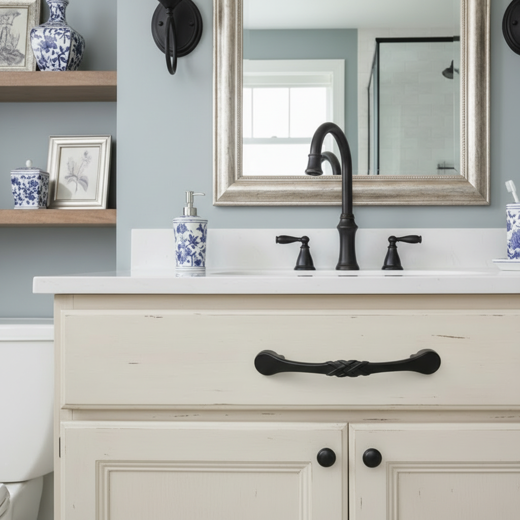 The Cosmas 7068FB braided pull has 3-3/4" hole spacing and is offered in three different finishes. The solid metal pull boasts a center braided design, tapering into a rounded base with an overall length of 5-1/2". The woven accent on the pull is understated and compliments the knobs and pulls in the same series. The Cosmas pull with its adaptable design, easily blends into many home interior styles including farmhouse, traditional, country and craftsman style homes.