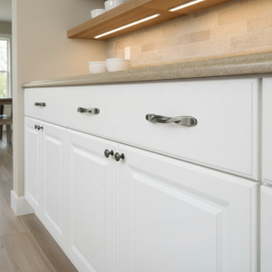 The Cosmas 9009AS Antique Silver Twist Cabinet Pull features a graceful flowing twist design that adds subtle movement and dimension to your cabinetry. The sculpted center detail and softly curved profile create an elegant focal point for kitchen cabinets, bathroom vanities, and furniture drawers.