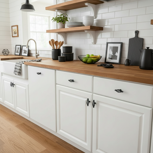 Complete the look with matching knobs and pulls in Flat Black: