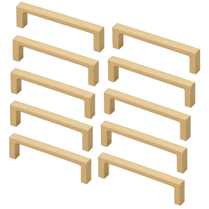 The Diversa 5" (128mm) square edge cabinet bar pull is a completely solid handle, and what you have come to expect from Diversa Hardware. This square cabinet handle shares nothing in common with the hollow, lightweight square pulls that are offered at online mega-retailers or the big box stores. The gold champagne finish compliments the upscale feel and sturdy weight, and is ideal for transitional, traditional, contemporary, and other home designs. This square cabinet pull also includes two screw lengths, which makes it suitable for almost all applications.