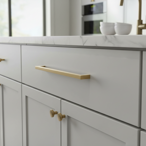 The Diversa 7-1/2" (192mm) square edge cabinet bar pull is a completely solid handle, and what you have come to expect from Diversa Hardware. This square cabinet handle shares nothing in common with the hollow, lightweight square pulls that are offered at online mega-retailers or the big box stores. The gold champagne finish compliments the upscale feel and sturdy weight, and is ideal for transitional, traditional, contemporary, and other home designs. This square cabinet pull also includes two screw lengths, which makes it suitable for almost all applications.