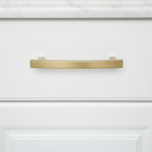 The Diversa 523-102-GC is a solid cabinet drawer pull with 4" (102mm) hole spacing, from the Diversa Hardware 523 Series. This arch cabinet pull is great for high-traffic areas like kitchens and bathrooms, and is exceptionally sturdy and durable. The Diversa 523-102-GC features a subtle arch design with subtle beveled edges, making it comfortable to the touch. The warm gold champagne finish is perfect for transitional, traditional, contemporary, and other home designs. It matches especially well with GE Cafe appliances with the Brushed Bronze knobs and handles.