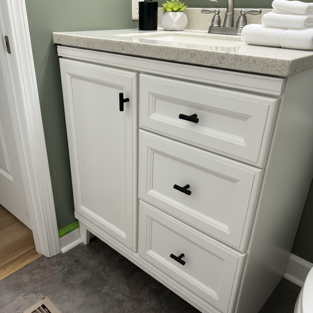The Diversa 4001-K-MB is a solid steel European t-bar knob from the Diversa Hardware 4001 Series. This solid cabinet knob is perfect for high-traffic areas like kitchens and bathrooms, and is exceptionally sturdy and durable. The Diversa 4001-K-MB features a solid Euro bar with subtle beveled edges, making it comfortable to the touch. The true matte black finish is perfect for transitional, traditional, contemporary, and other home designs. This European t-bar cabinet knob also includes two screw lengths, which makes it suitable for almost all applications.