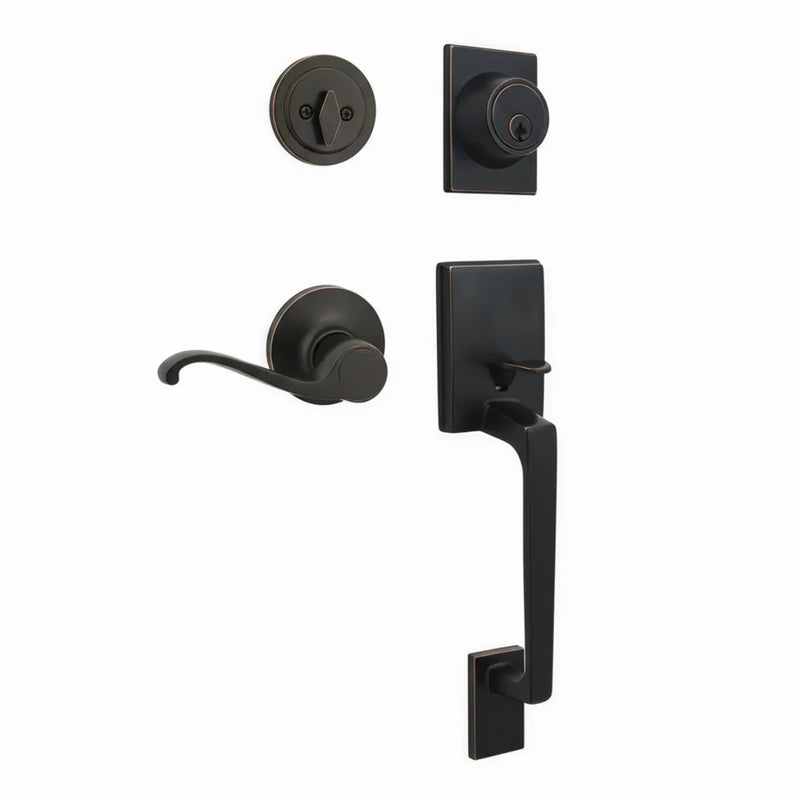 Collections: Cosmas 50 Series Oil Rubbed Bronze Door Levers, Front Door Handlesets, Oil Rubbed Bronze Front Door Handlesets, Products