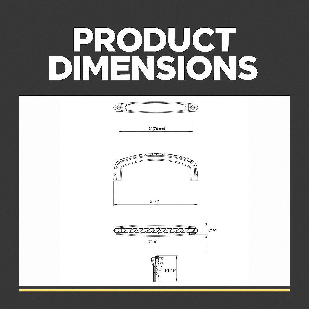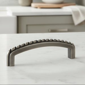 The Cosmas 228-3AS Antique Silver Rope Cabinet Pull features a timeless rope-style detail along the top edge, adding classic texture and character to kitchen cabinets, bathroom vanities, and furniture drawers. The gently arched profile provides a comfortable grip while enhancing traditional and vintage-inspired spaces.