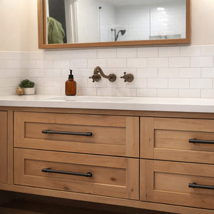 The Cosmas 161-319ORB is a solid steel cabinet pull with 12-5/8 inch hole spacing, and part of the popular Cosmas 161 Series of European Bar Pulls. The oil rubbed bronze finish is a rich dark bronze, with slight hues of copper patina. This surprisingly substantial pull is exceptionally sturdy and durable, perfect for high-traffic areas like kitchens and bathrooms. The 161 European bar pulls feature a solid Euro bar with subtle beveled edges, square leg posts, and two thick bands for an added design feature. These thick, easy to grasp pulls are versatile and perfect for contemporary, modern, transitional, and many other design choices.