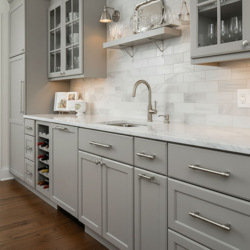 Complete the look with coordinating Satin Nickel cabinet knobs: