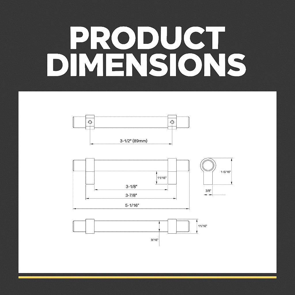 Finished in Brushed Brass, this bar pull introduces warm metallic color with a soft brushed sheen that feels current and versatile. With 3-1/2" hole spacing, 5-1/16" overall length, and a 1-5/16" projection, it is well suited to kitchens, bathrooms, laundry rooms, and built-ins.