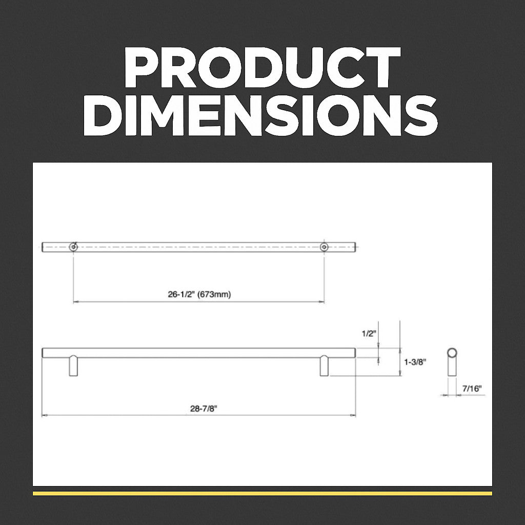 With 26-1/2" (673mm) hole spacing and a 1-3/8" projection, this pull is designed for reliable everyday use. The Oil Rubbed Bronze finish adds rich depth and contrast, while the solid steel construction delivers lasting strength and a more substantial feel.