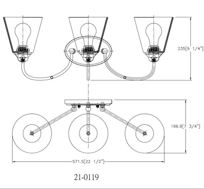 Galveston Matte Black 3 Light Wall Sconce / Bathroom Fixture : 21-0119