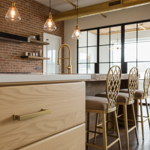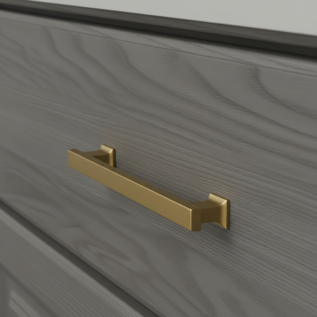 The Cosmas 702-160GC Gold Champagne Contemporary Cabinet Pull has 6-5/16 inch (160mm) hole spacing and a modern, square-edge design that coordinates perfectly with all 702 Series gold champagne pulls and knobs. This sturdy drawer pull is smooth and flat on the underside and is manufactured from 100% solid die-cast zinc metal with a luxurious gold champagne finish.