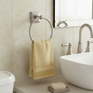 Designed for wall-mounted installation with concealed hardware, this towel ring blends decorative detailing with everyday functionality. The Satin Nickel finish offers a clean, modern sheen and dependable performance in high-moisture bathroom environments.