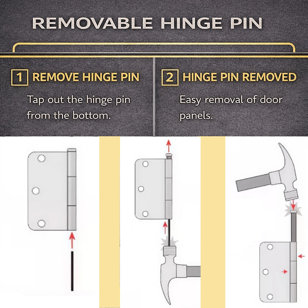 Built with steel hinge plates and a removable steel hinge pin, this hinge is ideal for standard residential installations and replacements. Matching mounting screws are included for a clean, coordinated finish.